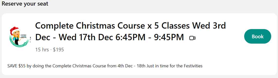 Do the Christmas Course of all 5 classes and SAVE $55
